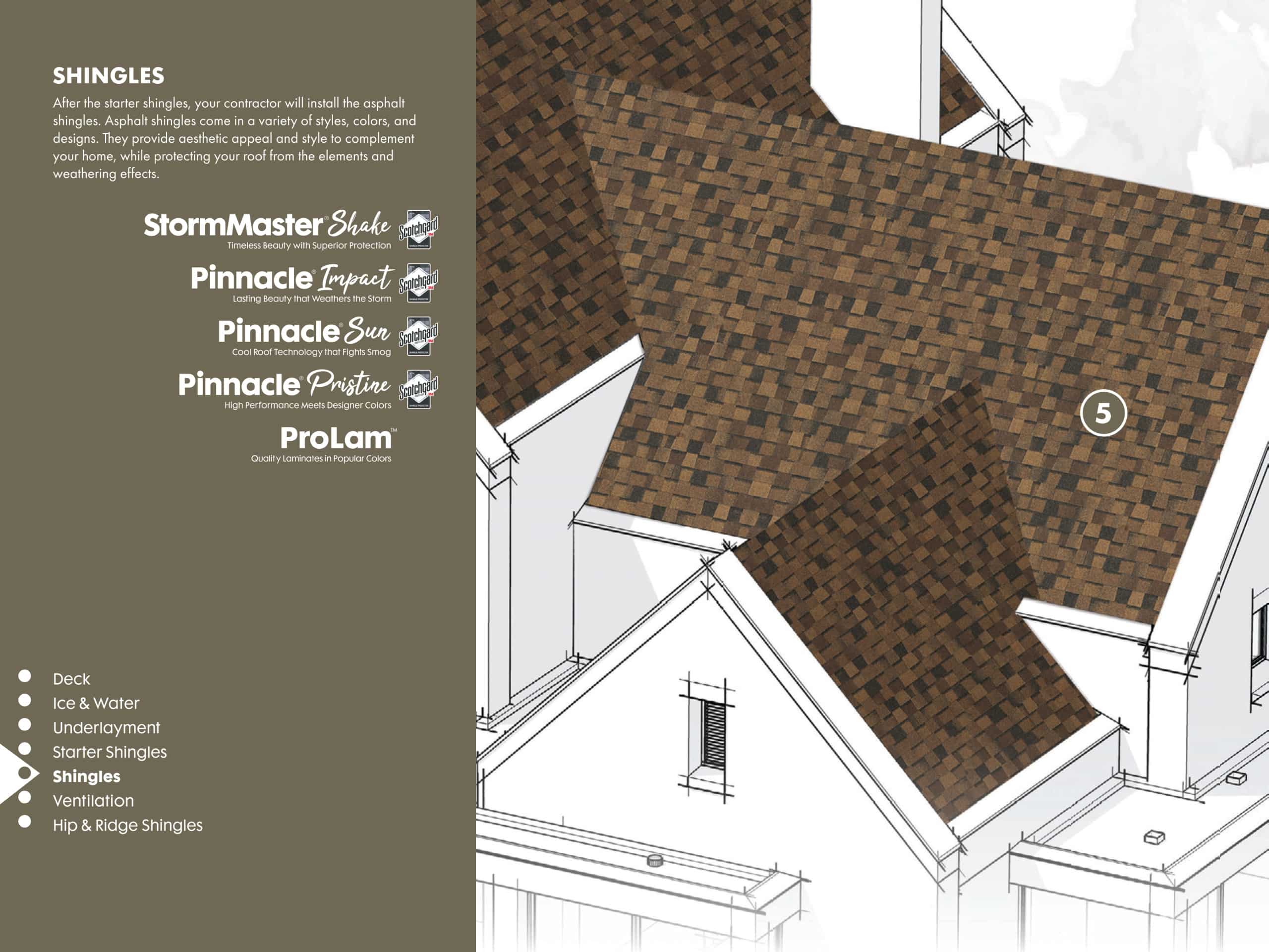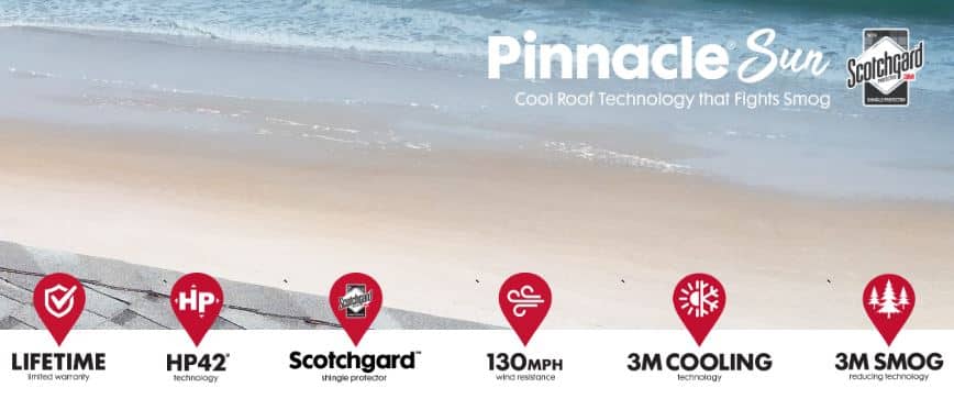 - Atlas Pinnacle Sun Shingles – Featuring 3M Cool Roofing Granules and Scotchgard Protector, keeping your home cooler and preventing unsightly algae that can hinder their reflective abilities over time.